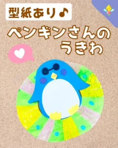 夏らしくてちょっとおもしろい製作です♪オリジナルのデザインの浮き輪をペンギンさんにプレゼントしてあげてね!